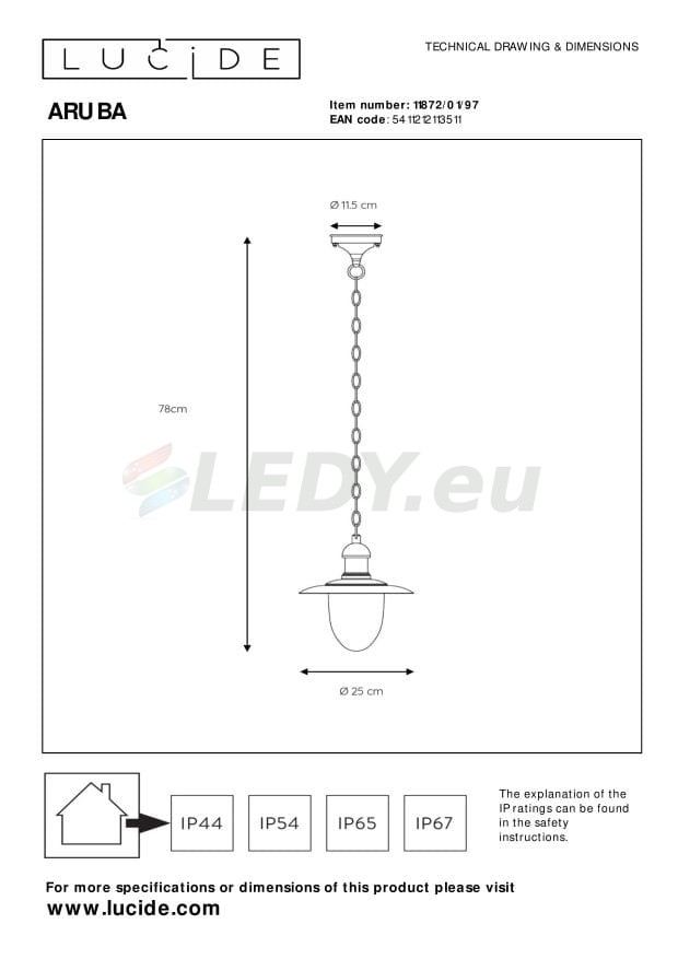 ARUBA lampa wisząca zewnętrzna 11872/01/97 Lucide - NEGOCJUJ CENĘ!