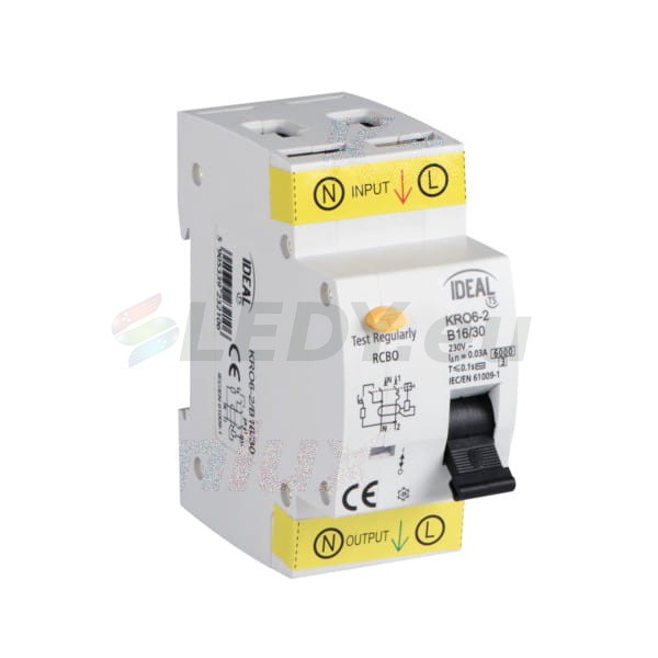 KRO6-2/B16/30 Wyłącznik róznicowo-prądowy, z członem nadmiarowym, 6kA, 2P 23210 Ideal TS