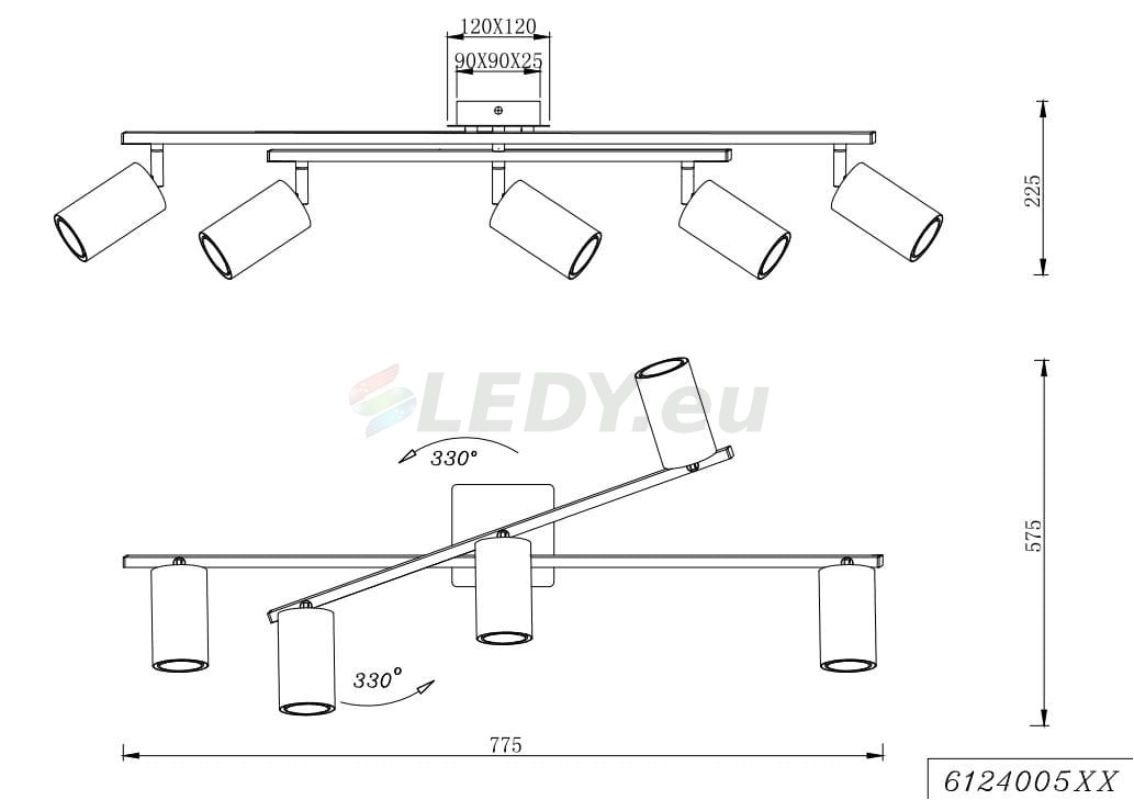 - ilość źródeł / rodzaj trzonka: 5 x GU10