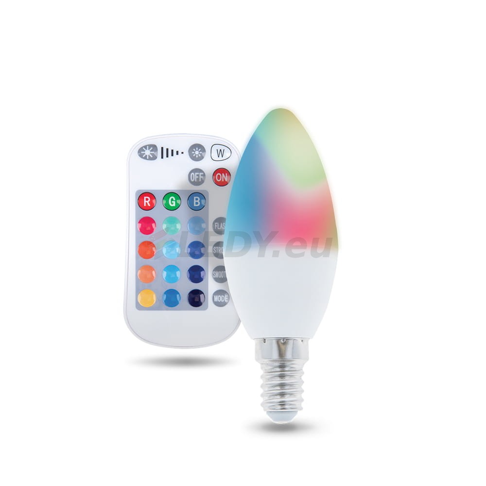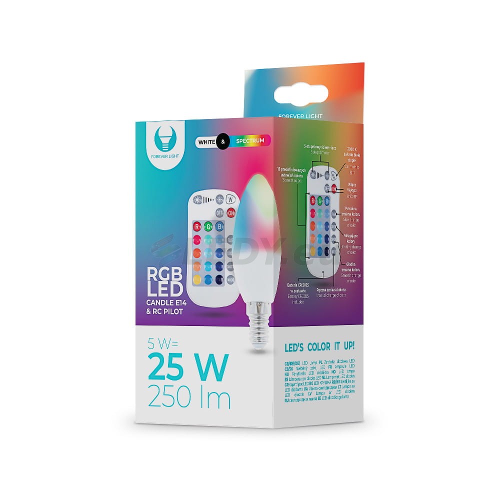 Żarówka LED E14 C37 RGB + Biały 5W z pilotem 250lm RTV003565 Forever Light